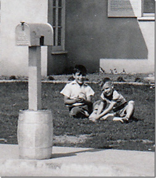 I really don't know the particulars regarding this photo postcard that was sent to my grandparents. And I don't know who Ernie Kearns and Bill Tillman were. An interesting thing about this photo is that it looks like it was taken after my grandparents moved in. Upon closer examination of this photo I noticed two little boys sitting on the front lawn. They're my two uncles.